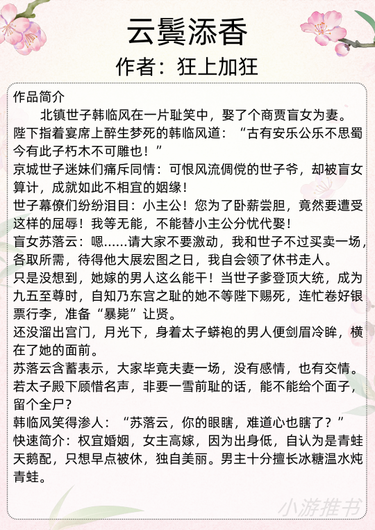 盘点20本剧情精彩的古言好文《刺棠》《穿成亡国太子妃》《穿成权臣的早逝未婚妻》
