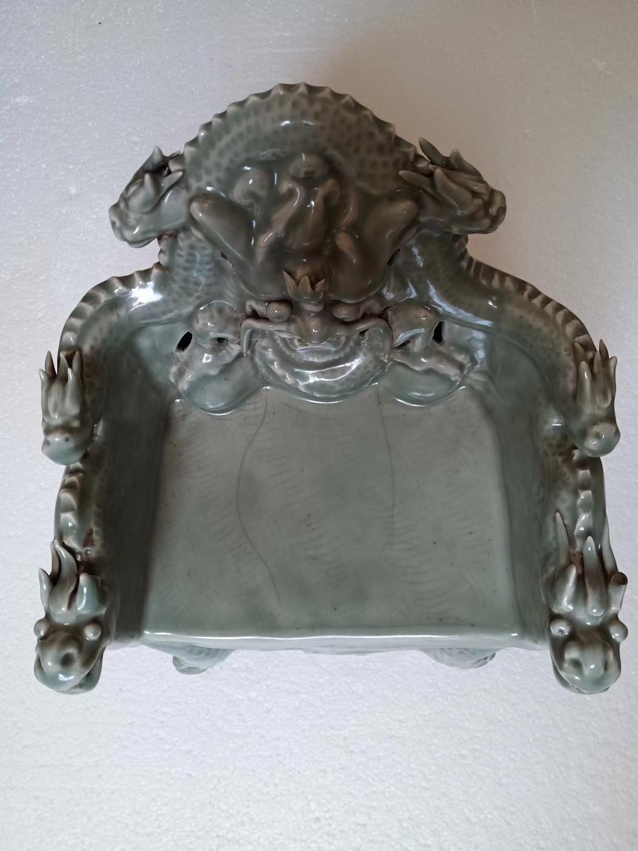 此时烧制出来的青瓷釉色多呈淡青色,被称作“淡青釉瓷”,但瓷器胎质非常粗糙,窑厂规模也不大。到了宋朝,之前盛产青瓷的越窑因各种原因逐渐衰落,先进的制瓷技术和优秀的瓷匠进入龙泉,龙泉窑产品的品质迅速提高。从北宋开始,龙泉窑逐渐取代越窑,一跃成为江南第一名窑。进入南宋,龙泉窑得到了空前发展。其制瓷技术承越窑工艺,融会汝窑风格,追慕南宋官窑之精确,可谓是汇四方之菁华,集大成而臻完美。特别是南宋晚期烧制成功的粉青釉和梅子青釉,达到青瓷釉色之美的顶峰,在我国瓷器史上谱写下光辉的篇章。
