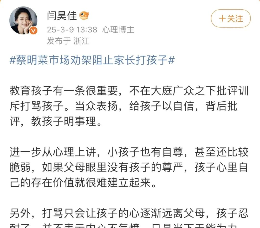 对于蔡明劝阻家长打孩子的行为,大家态度不一。