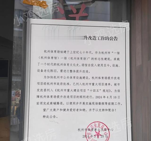 小鸡沿健康西路继续向北,还发现了早在2024年3月份就张贴的关于启动杭州体育场提升改造工作的公告。