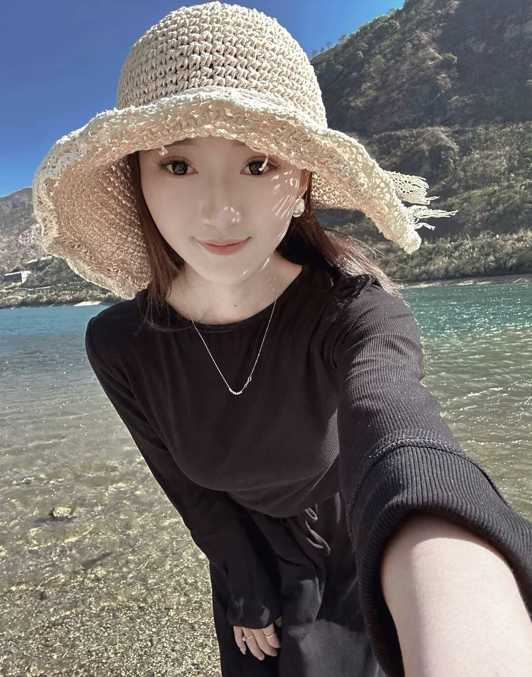 湖畔的景致本就如诗如画,而这位MM的出现更是为这片美景增添了几分人文情怀。她漫步在湖畔的小径上,时而驻足欣赏湖面的波光粼粼,时而低头沉思,仿佛在与大自然进行着一场无声的对话。她的每一个动作、每一个表情,都散发着一种独特的韵味,让人忍不住想要多看几眼。