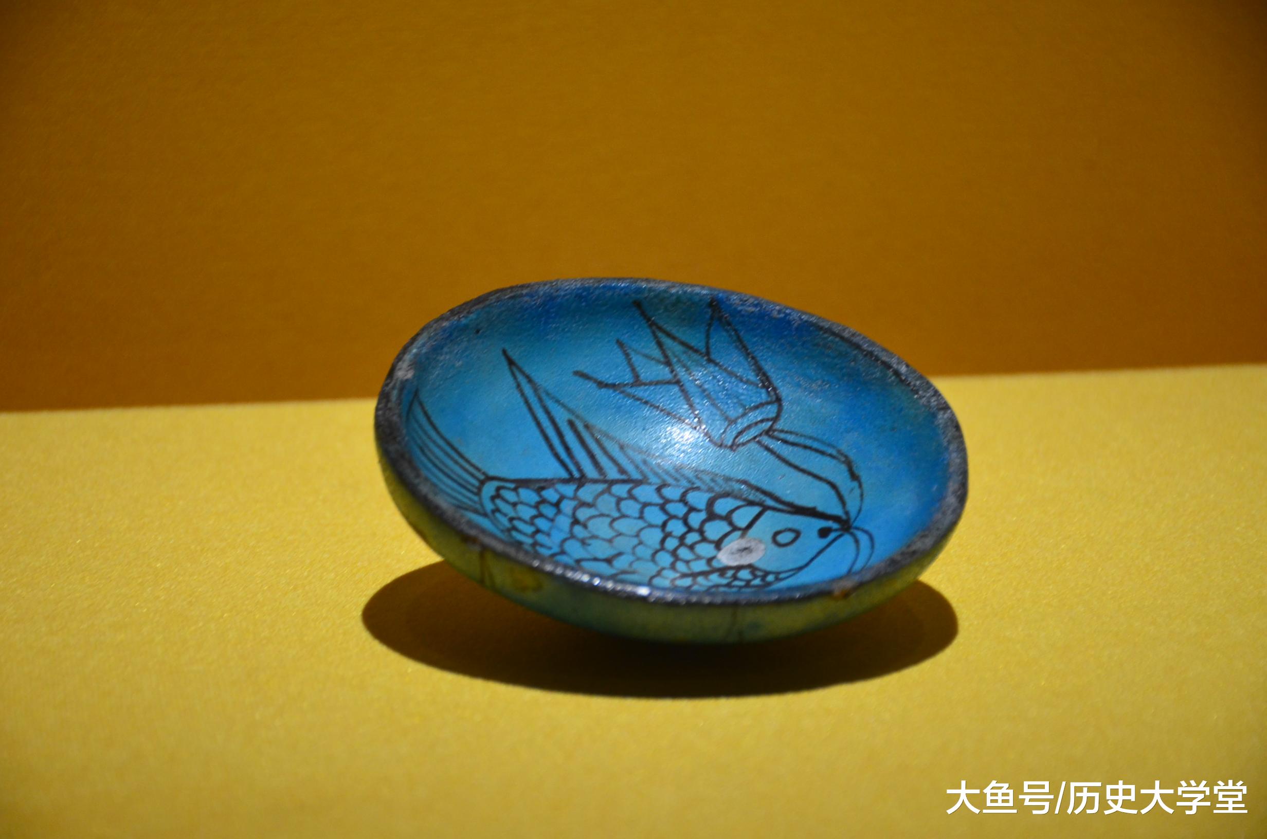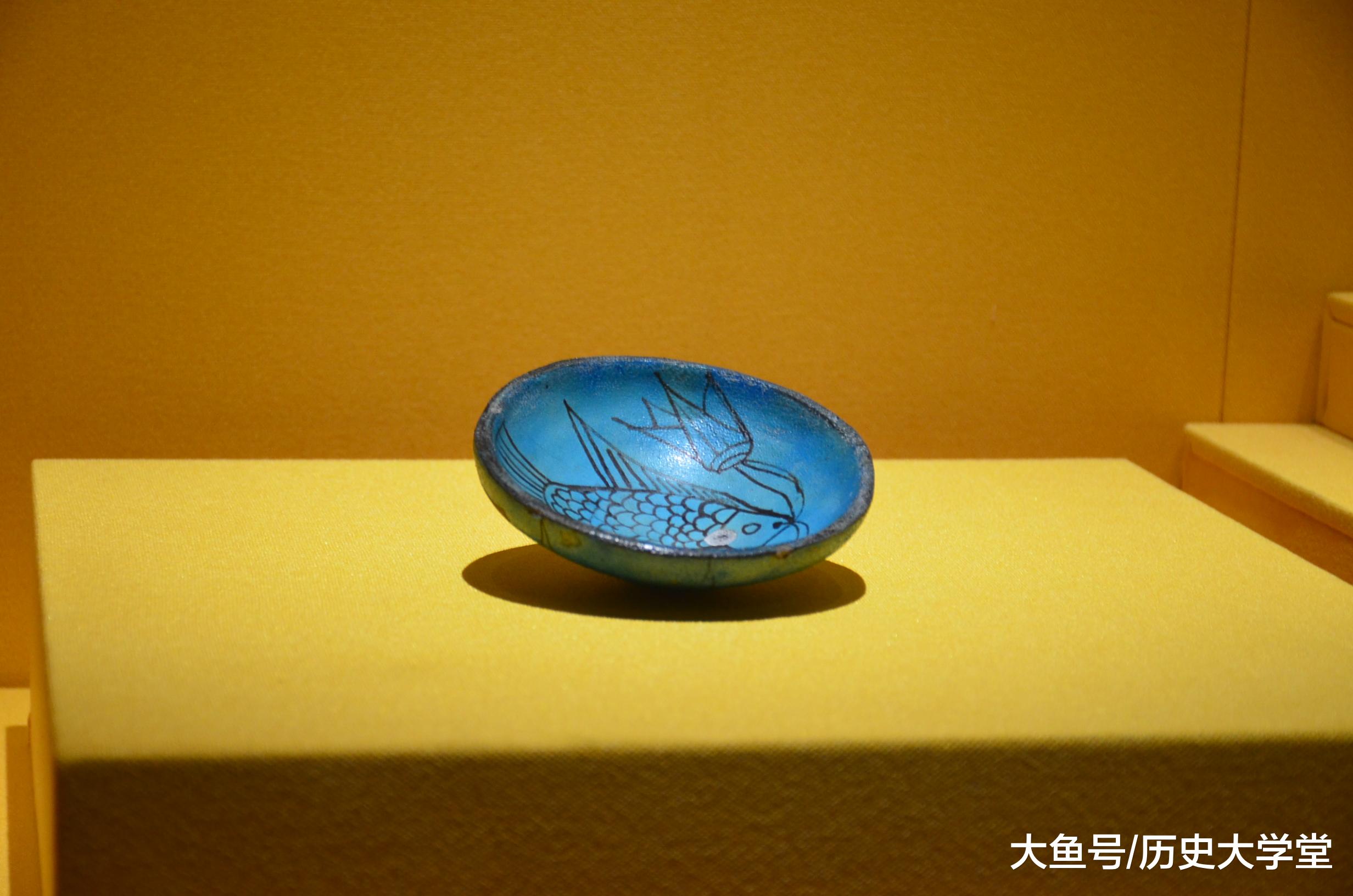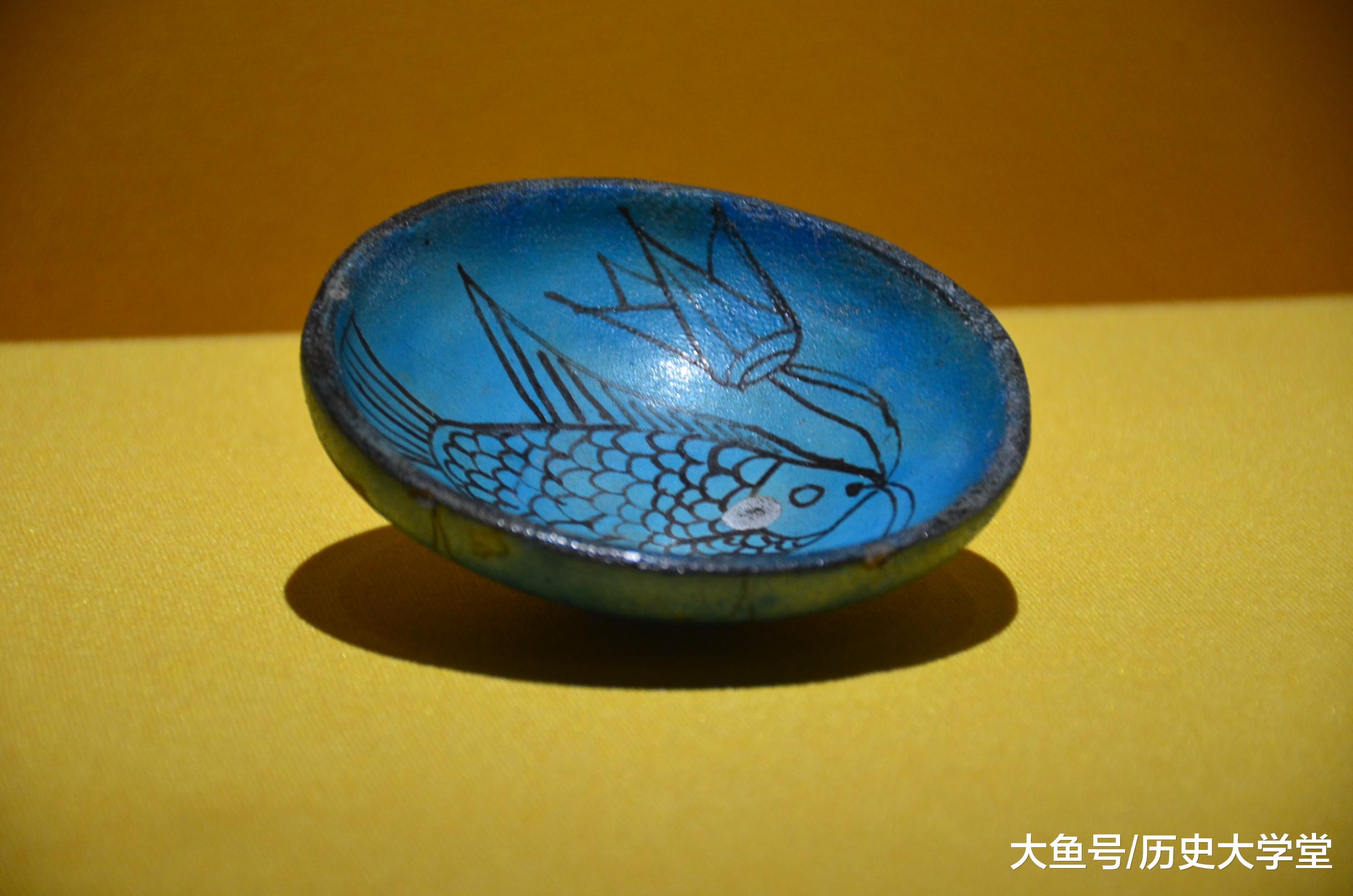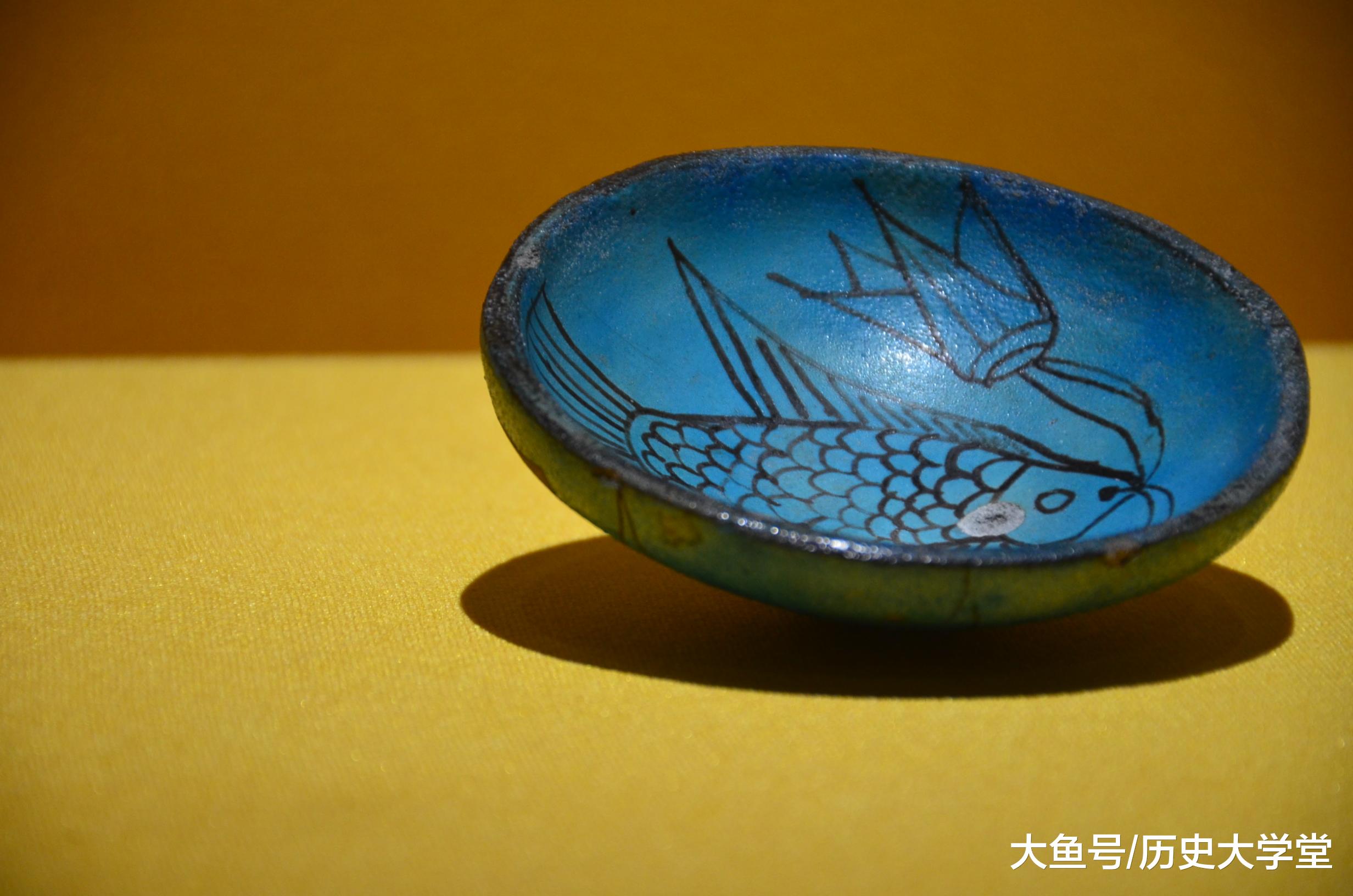 古埃及的碗(公元前1550-前1295年),碗面被施以浓郁的绿松石色,内部绘有一条大鱼,鱼嘴衔两朵莲花,一朵含苞待放,一朵正在盛开。鱼和莲是庙宇营造 环境时常用的元素,呈现的主题是繁盛、重生和救赎。 #博物馆# #古埃及#