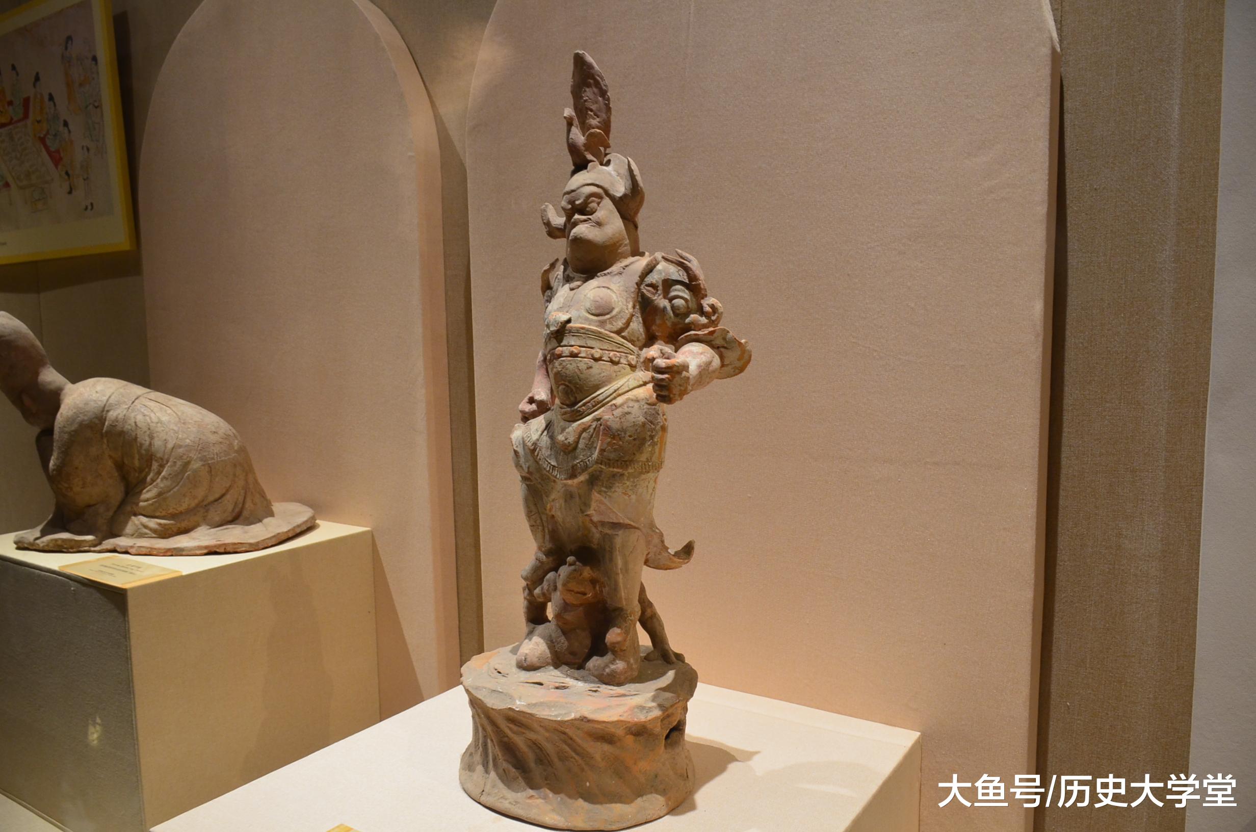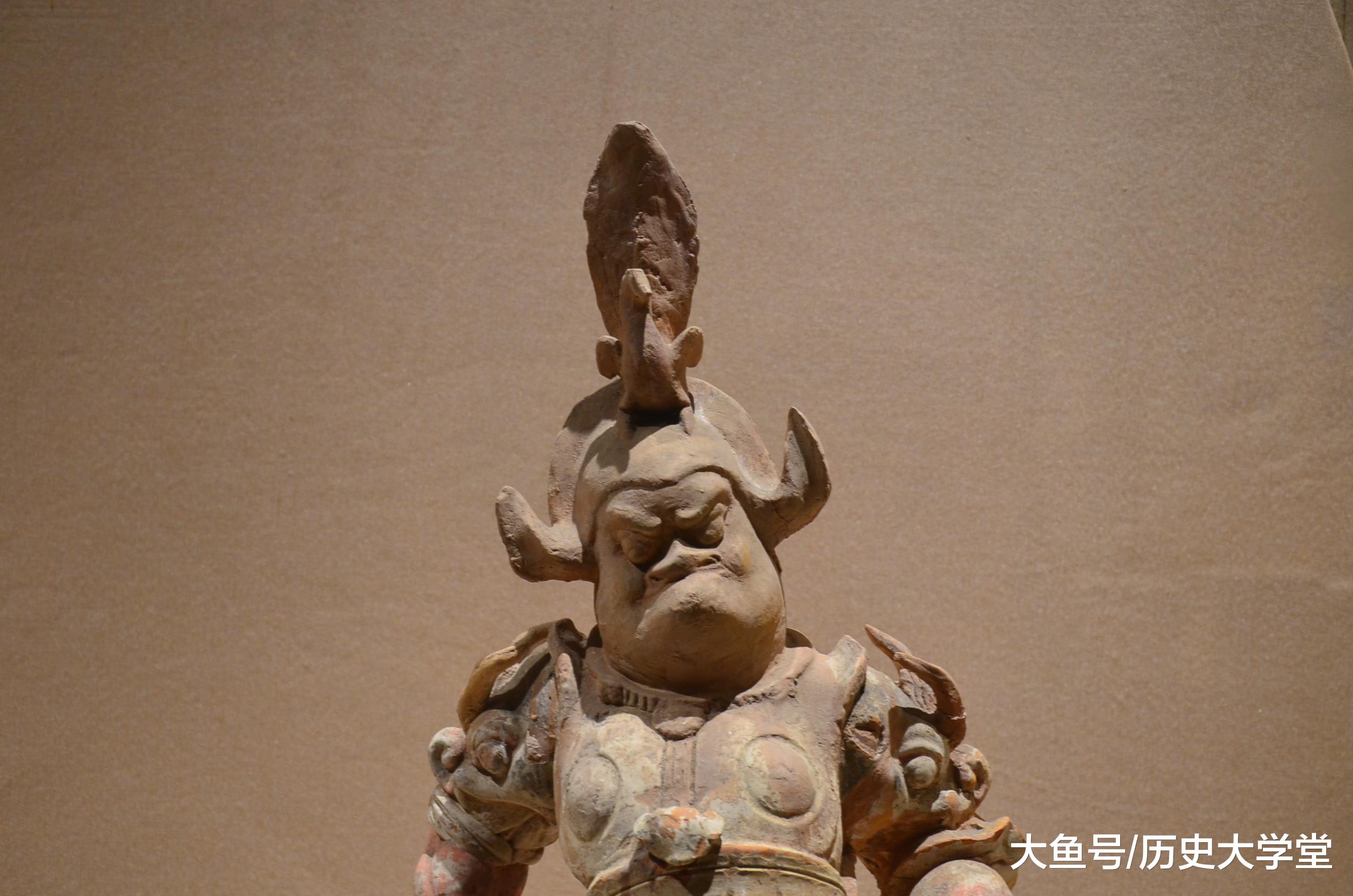 这是唐朝的天王俑,在陕西省西安市长安区出土。天王俑是以现实中唐代武士的形象为原型来塑造的。天王俑的发型为高髻,身穿明光铠甲,足踏小鬼,居高临下,怒目而视。 #唐朝# #文物#