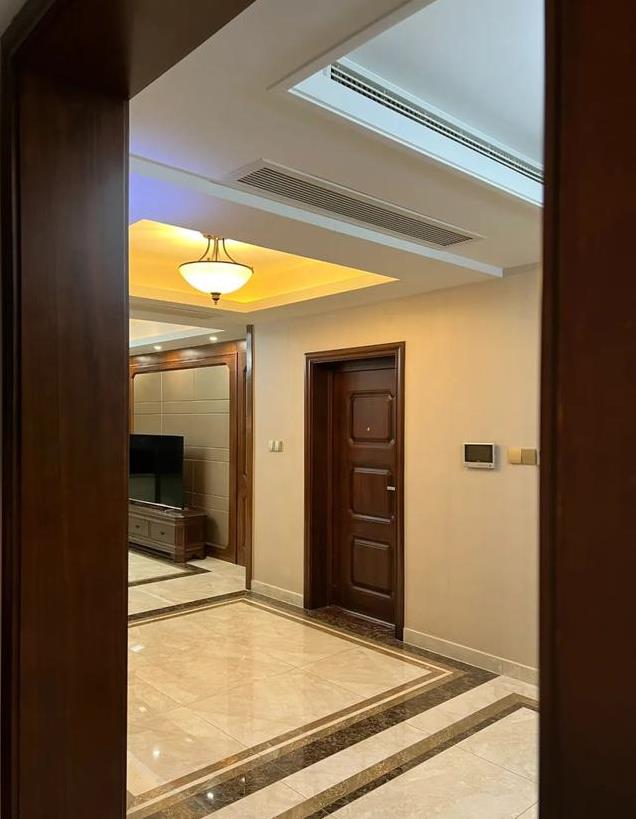 这样的造型让天花板不再单调,也增加房间的纵深感,尤其是对于这种走廊区域,显得空间更大。
