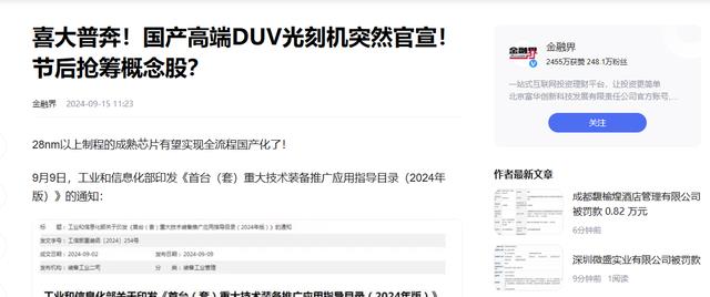 1. 喜大普奔!国产高端DUV光刻机突然官宣!节后抢筹概念股? 金融界2024-09-15 11:23