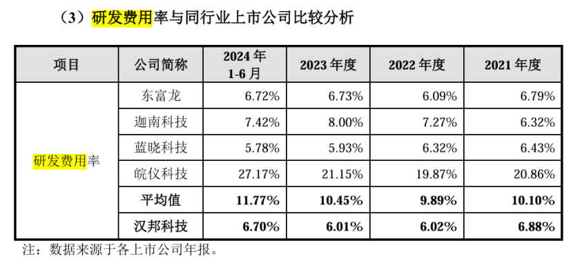 (研发费用率截图:汉邦科技招股书上会稿)