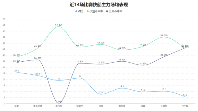 但从他本赛季为快船效力的14场比赛来看,他的各场表现还是糟糕的情况居多,14战有12战的单场得分均在15分及以下,并且投篮命中率也是忽高忽低,从这方面来看他的表现极其不稳定。
