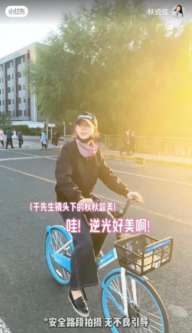 12月10日,秋瓷炫又在社交平台秀恩爱了,她分享了老公教她怎么骑共享单车并一起骑车,一起散步,一起吃冰激凌的浪漫视频。她首次尝试了骑乘共享单车,体验了骑共享单车出行的愉悦心情。她的老公于晓光一路相伴,为她拍照,夫妻俩一起开启了一次在家门口别开生面的旅行,平淡中有着浪漫,简单中透着幸福。