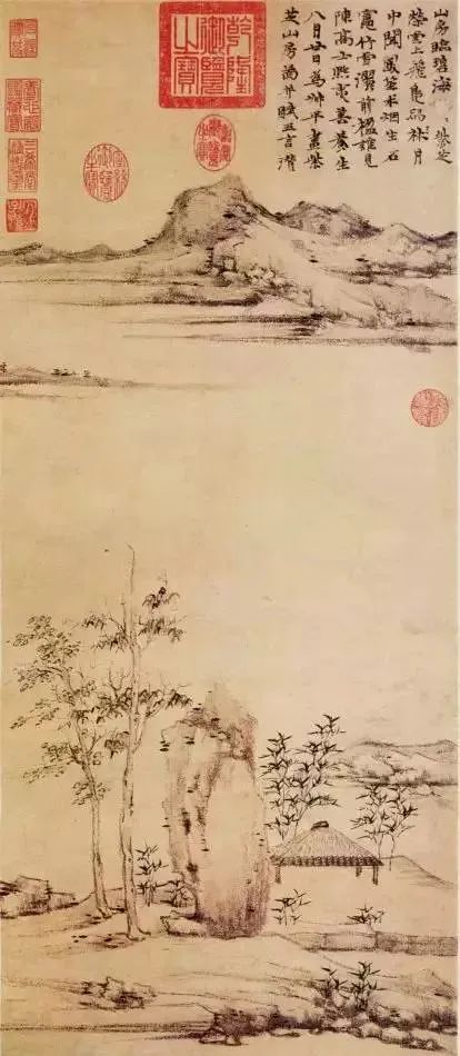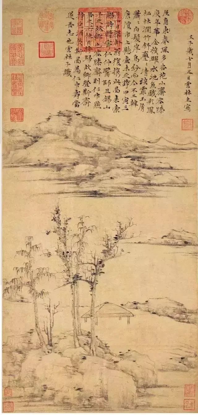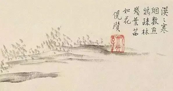 倪瓒的画以简约、疏淡著称,他的作品往往以寒烟清静、疏林坡岸为主题,通过简洁的笔墨和色彩,营造出一种宁静、深远的意境。如《容膝斋图》等作品,展现了倪瓒对极简美学的独特理解和追求。