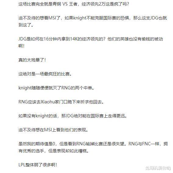 外网热议JDG击败RNG:青铜与王者的差距,RNG应该给小虎跪下