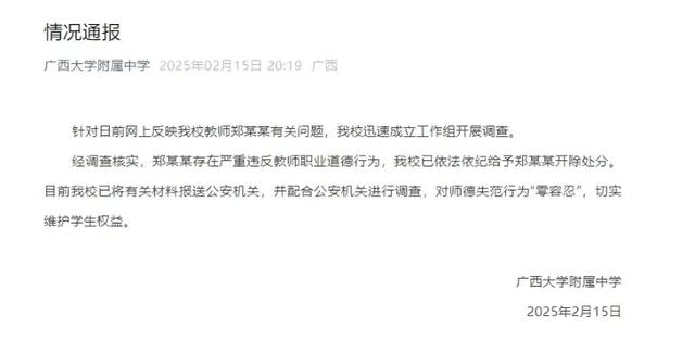 广西大学附属中学的通报,图片来源于网络