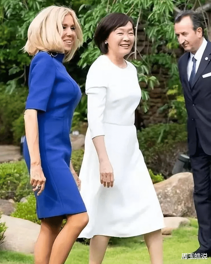 71岁的法国第一夫人依旧优雅从容,她身着路易威登短裙,露出修长的双腿,这位曾经的戏剧老师,用独特魅力演绎着浪漫法兰西的传奇故事。