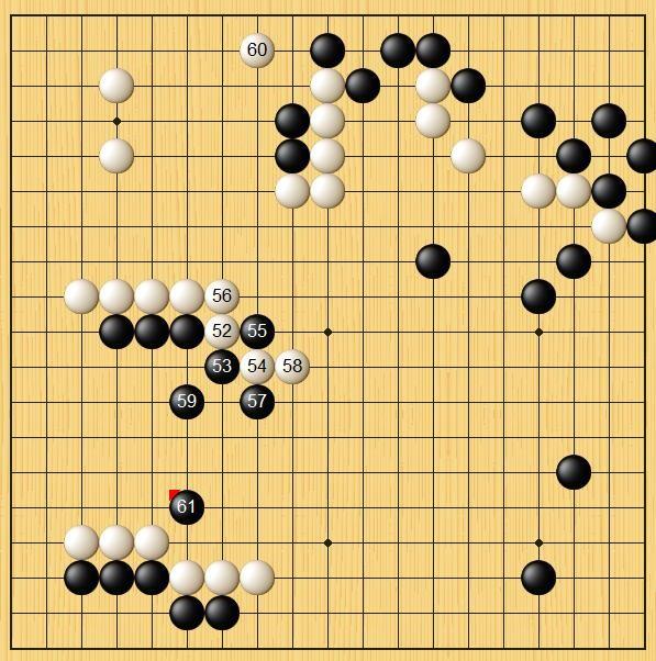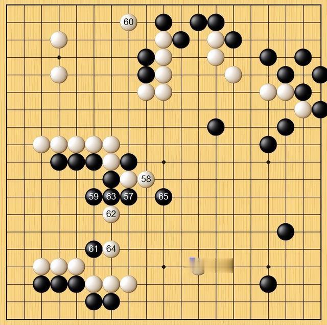 黑55,57,俗手。黑61刺,局面开始看不太清楚。