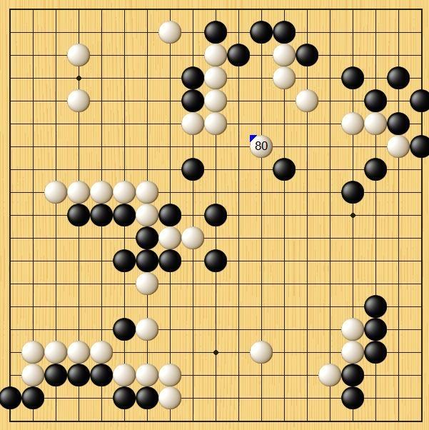 白80飞,看起来是攻防兼备的好手。如果黑棋随手一挡,黑棋的那点优势将随时灰飞烟灭。