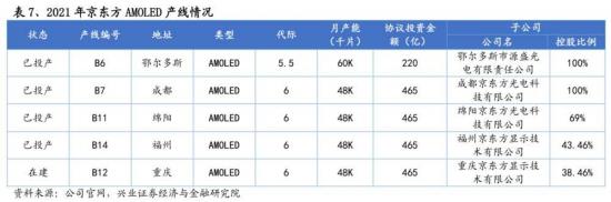 2020年,中国AMOLED面板在全球的市占率是13.2%,根据兴业证券研报数据,全球范围内有25条OLED生产线投产。其中京东方规划中的AMOLED产线共计5条,4条已经建成投产,仍有一条在建,规划总产能为252K/月。OPPO Find N外屏供应商就是京东方,内屏则是三星。