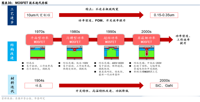 MOSFET演进方向:更高的开关频率、更高的功率密度以及更低的功耗。MOSFET器件具有开关速度快、输入阻抗高、热稳定性好等特点,应用范围涵盖通信、消费电子、汽车电子、工业控制、电源管理等中低压高频领域。