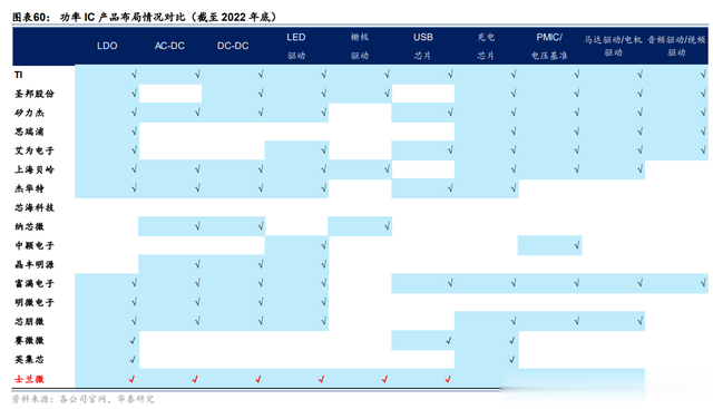 4)ASIC产品:包括信号链(逻辑&电平转换、开关电路、放大器&比较器、隔离电路、接口),电源管理(线性稳压电路、双极DCDC稳压电路、双极PWM控制器、达林顿驱动电路、基准电路)等