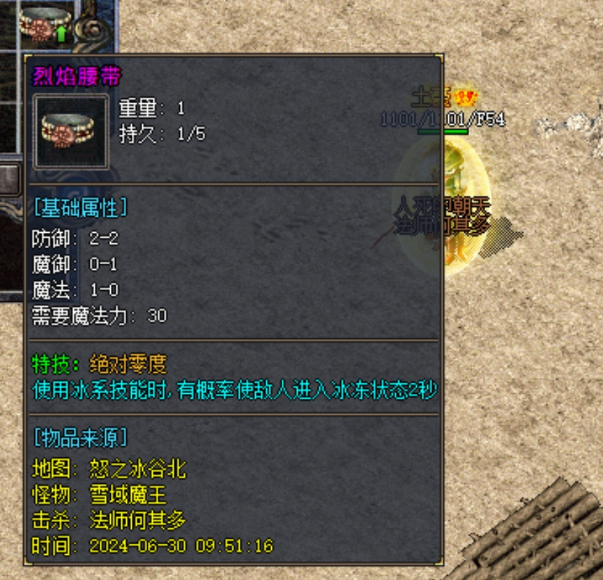 雪域魔王爆的,一条带技能的烈焰腰带——
