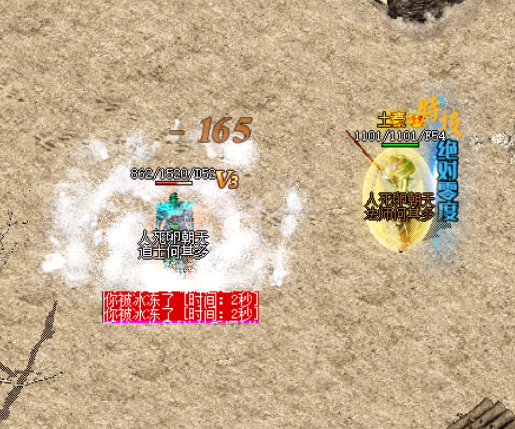一个是冰冻2秒,完全不能动弹;