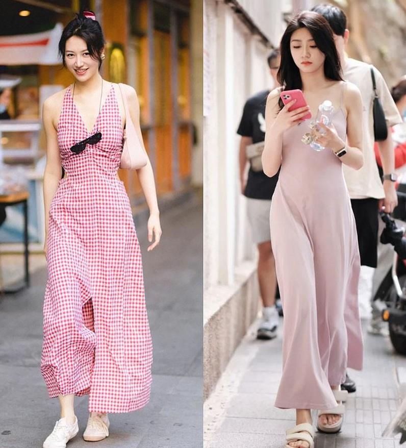 粉色连衣裙讲究的是减龄和温柔感共存,对于稍微修身的粉色裙子,就要注意它是纯色还是花色的,尤其是吊带或者露肩裙。纯纯的粉色,会让这条裙子拥有居家裙的既视感,不友好。可以学着像成都女生这样,直接挑选带有花纹的粉裙子,花色不用太浮夸,秀气一些选择花色淡雅、花纹间距大的粉裙,走成熟御姐范,挑选花色稍微密集的粉裙子,不同的图案会带来不一样的视觉。?上海女生的摩登粉色方向1:运动感摩登
