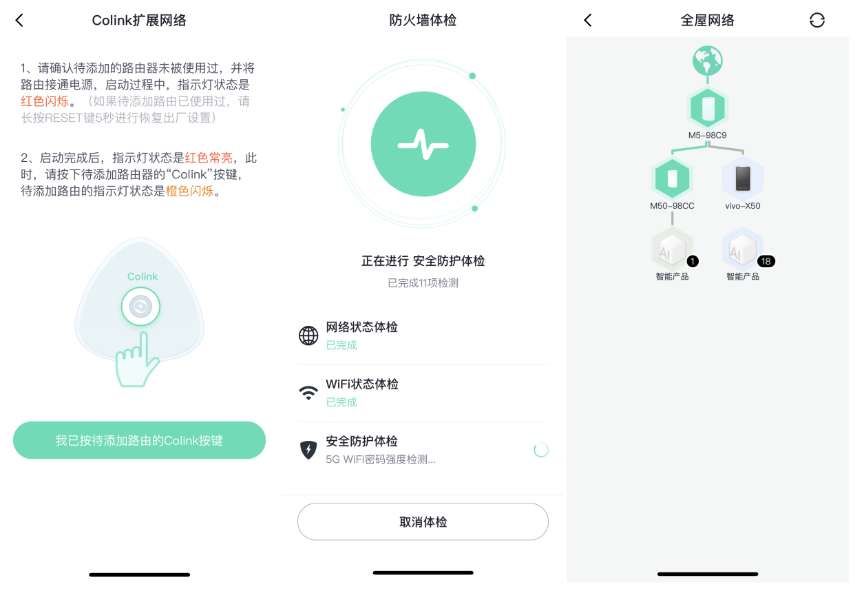 另外,对于像我家里原先用开了M5子母路由的,要通过京东云·360全屋路由进行MESH组网,也很方便。顶部的按键能够提供它们之间的一键组网,不用去做什么设置,对于用户来说非常的友好。而且现在很多路由都配备了复制老路由设置的功能,更换路由同样很方便,京东云·360全屋路由也具备了这样的功能。所以它的应用表现,很值得肯定。