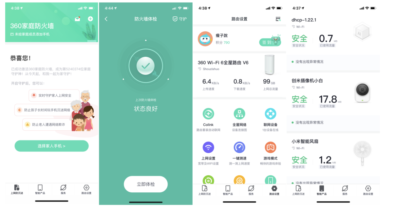 初上手通过360家庭防火墙App,能够直观简单的设置路由器,相对比之前需要用网页后台管理器的路由,要更加的方便。