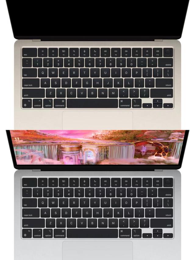 M2版本MacBook Air的搭载了Liquid视网膜刘海屏,500nit亮度,刘海里放下了MacBook Pro 14/16寸同款的1080P高清摄像头,边框也变窄。