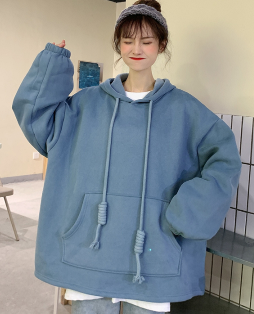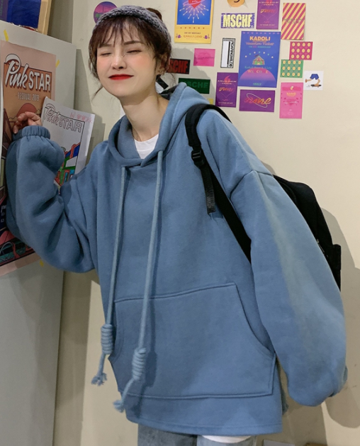 想要变得没,就要穿搭的好,小个子女孩子要如何穿搭才会显得更加的清爽大气,看下面这套 蓝色慵懒风连帽卫衣,清新感十足,让你分分钟变成女神模样,蓝色的衣服看起来还非常的高级,同时也很适合学生的年龄段哦。#时尚单品解析# #变美大作战#