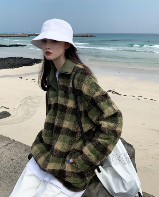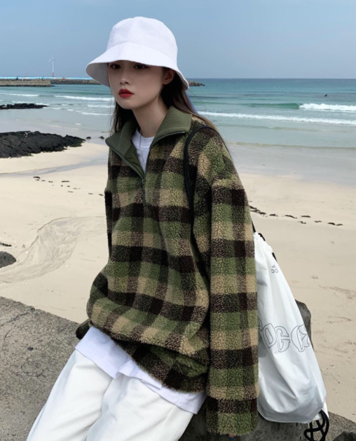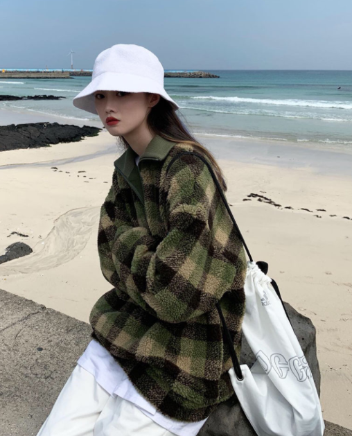 衣服搭配很重要,小个子女孩要穿搭的漂亮,首先在衣服上下功夫,选择对的款式就能让你分分钟变成美少女,用绿色宽松加绒格子上衣,内搭一件百搭的白色T恤,简单的颜色搭配,不会搭配成杀马特的效果来,轻轻松松凹造型,漂亮又大气。