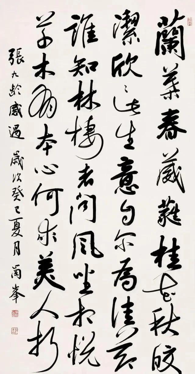 郎岗峰的《感遇十二首·其一》,高古而优雅。他的字,如同诗中的意境,既有兰叶的生机,又有桂华的皎洁,给人以美的享受。郎岗峰的“兰”字,笔法高古,如同兰花的高雅,每一笔都透露出一种清幽和芬芳。“叶”字则如同叶的生机,笔势流畅,墨色饱满,给人以生机勃勃的感觉。