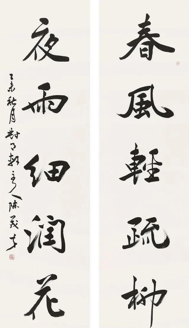 陈茂才的《春风清疏柳》,技法娴熟,俊逸而不失法度,稳健而带有飘逸。他的字,如同诗中的意境,既有春风的温柔,又有夜雨的细腻,给人以美的享受。陈茂才的“春”字,笔法娴熟,如同春风的温柔,每一笔都透露出一种生机和活力。“风”字则如同风的轻盈,笔势流畅,墨色淡雅,给人以春风拂面的舒适感。