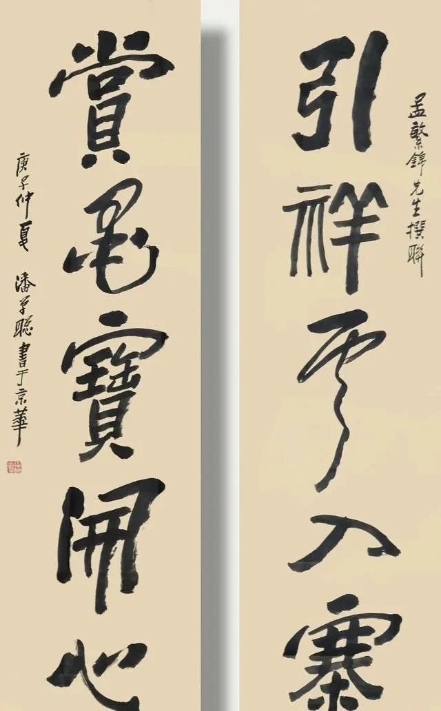 潘学聪的书法,有意思,碑的力感与帖的活泼并用,笔法灵活,结字瘦长,各呈姿态。他的字,如同诗中的意境,既有祥云的吉祥,又有墨宝的喜悦,给人以美的享受。潘学聪的“引”字,笔法有意思,如同引路的旗帜,每一笔都充满了引导和方向。“云”字则如同云的变幻,笔势灵活,墨色多变,给人以云卷云舒的意境。