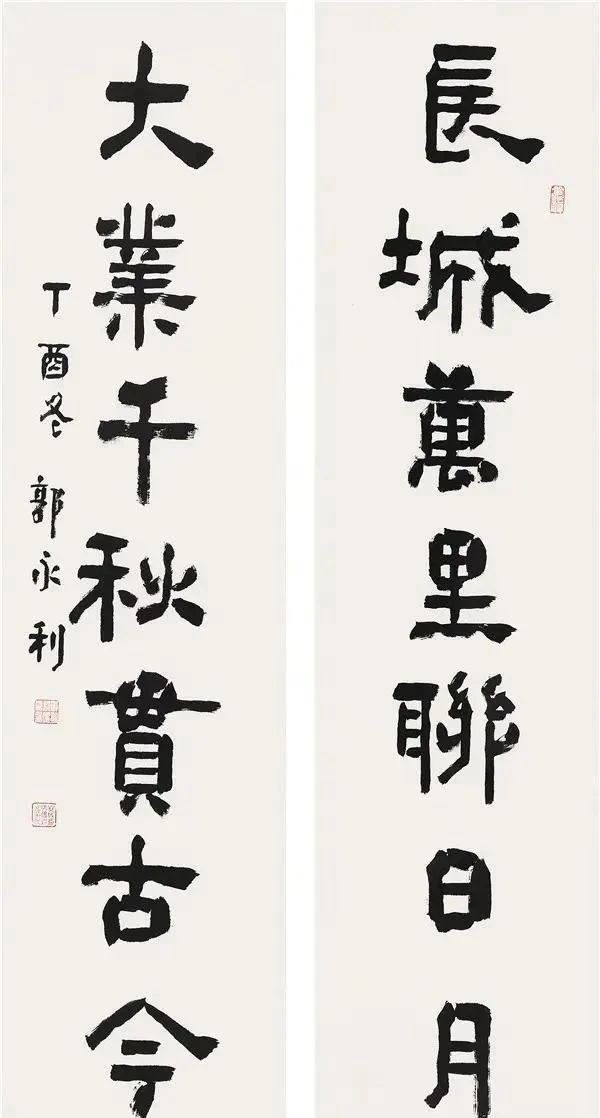 郭永利的《长城万里》,平正而散淡,却又不乏浑穆与豪迈。他的字,如同诗中的意境,既有长城的雄伟,又有日月的永恒,给人以历史的厚重感。郭永利的“长”字,笔法平正,如同长城的绵延,每一笔都充满了坚定和力量。“城”字则如同城池的坚固,笔势稳健,结构紧凑,给人以历史的厚重感。