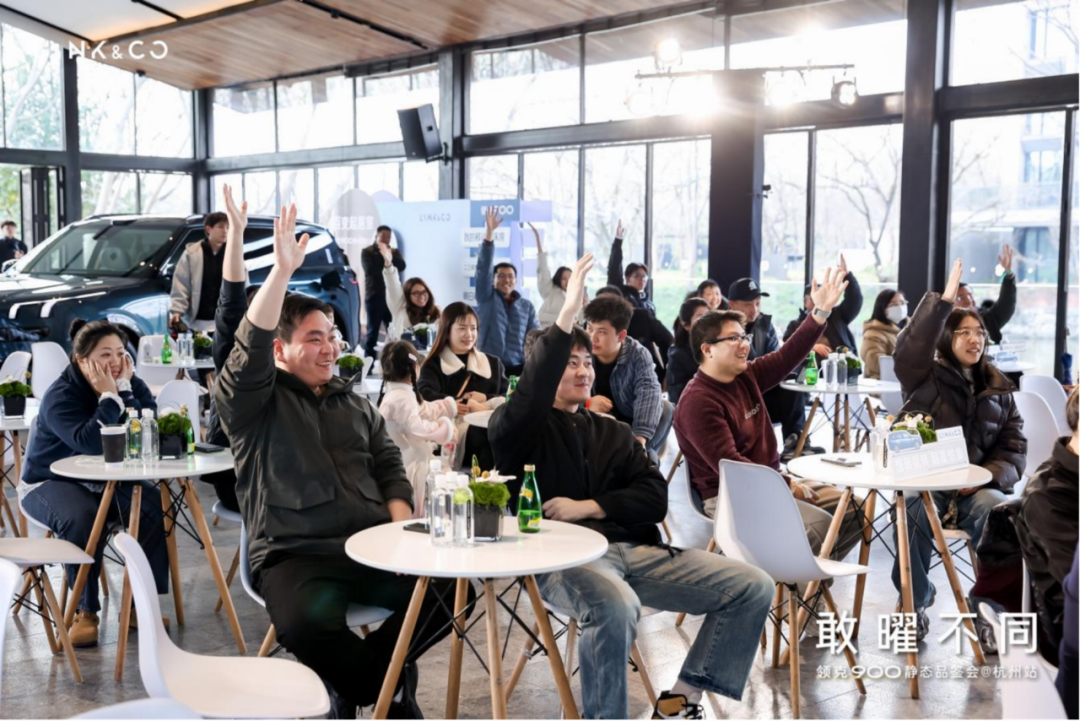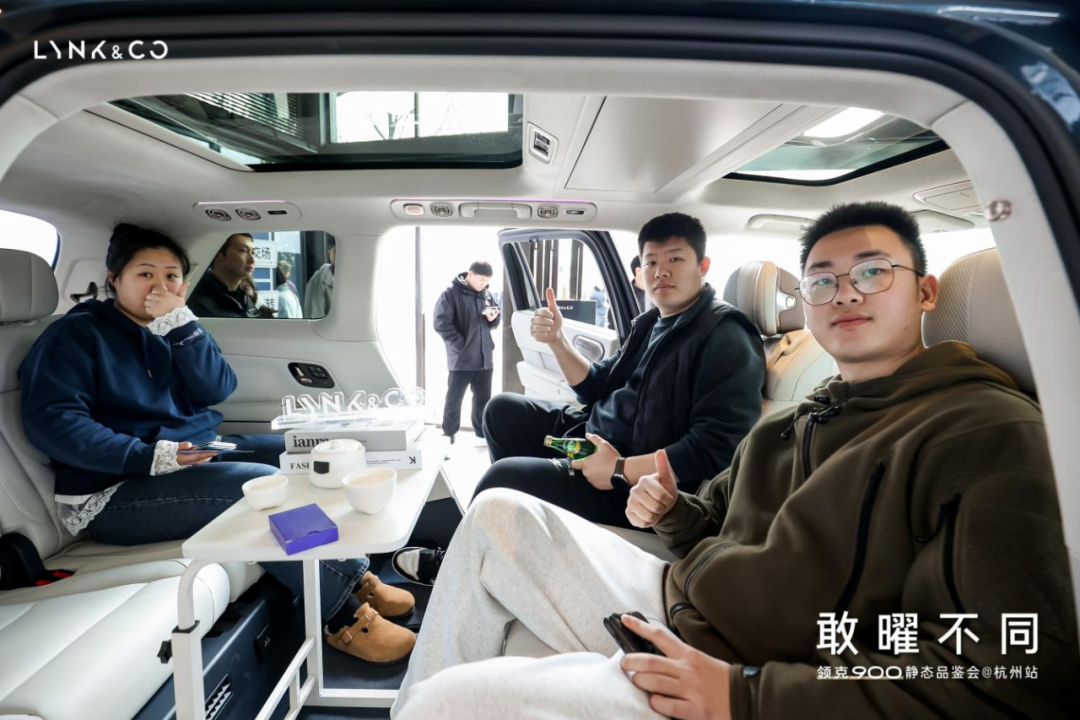 活动现场气氛热烈,来自媒体、KOL、客户等累计超过百余位嘉宾共同见证了领克900的非凡魅力。活动现场精心布置了三大场景式体验区,分别为云端会客厅、百变起居室、亲子垂钓台,充分展现了领克900“百变空间”的灵活性和多样性。