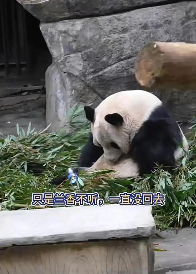饲养员用竹子吸引住了“兰香”的注意力,让它跟着自己回到了熊猫馆,成功拿走了地上的可乐瓶。“兰香”回去之后还不停地望向外面,可能是对刚才发生的一切感到好奇和疑惑吧。