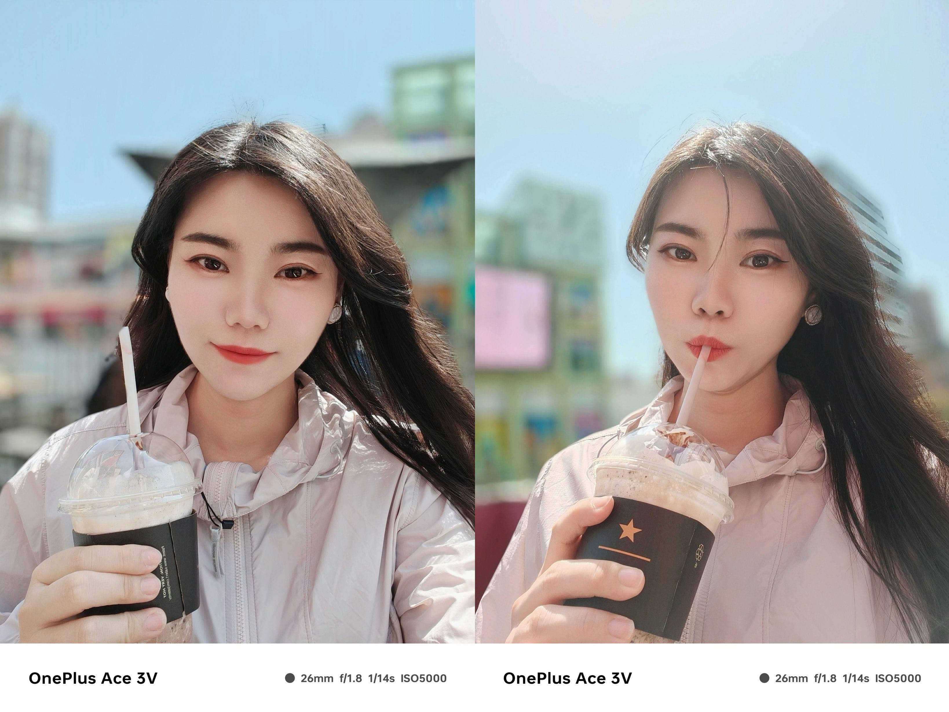 在光线差异较大的晴朗天气下,镜头和传感器具备足够的适应能力,能够很好地捕捉当前的实际光线变化。一加Ace 3V前置摄像头自拍出来的照片颜色很饱满,细节发丝都看得很清楚。这样的表现非常适合日常使用和社交媒体分享。