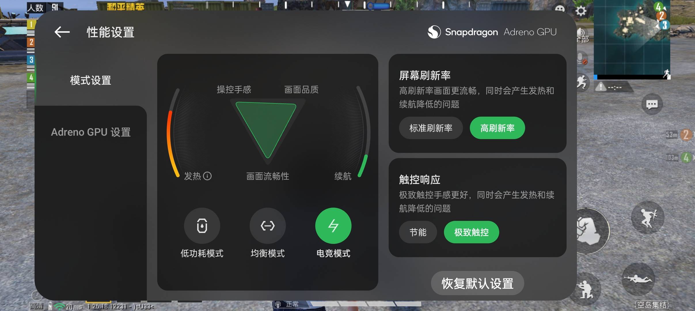 用户可以选择低功耗模式、均衡模式以及专为极致体验设计的电竞模式。屏幕刷新率也提供了标准与高刷新率的选项,以满足不同玩家的需求。为了追求更流畅的游戏体验,选择电竞模式搭配高刷新率是首选配置。玩《王者荣耀》即便是开启最高画质和全特效,也能够实现稳定的 120 帧的高帧率表现,帧率波动极小。