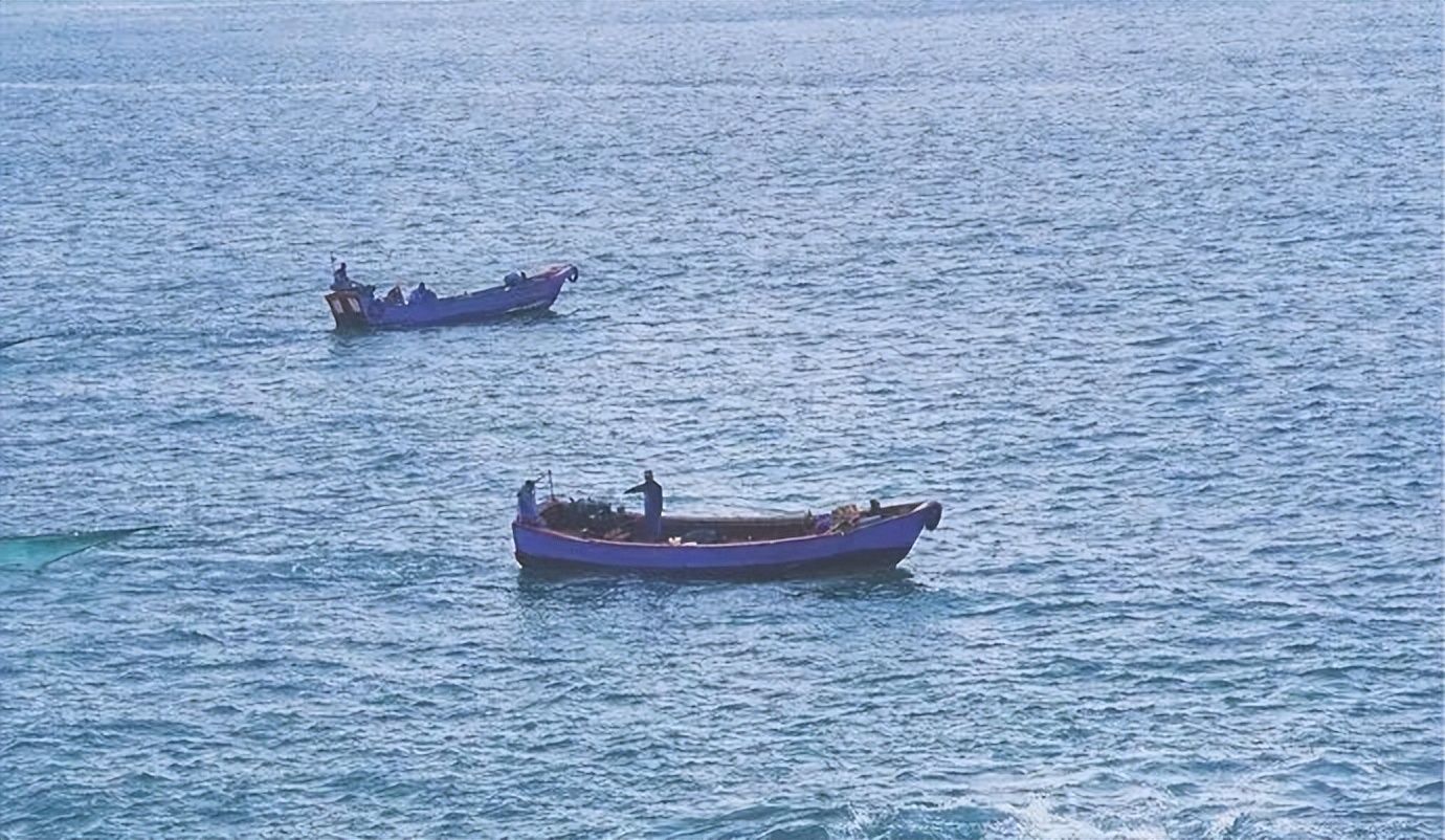 渔舟在碧波荡漾中穿梭,构成了一幅美丽的海上牧场图。
