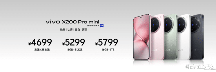 vivo X200 Pro mini则采用了高颜值直屏设计,6.31英寸小直屏拥有极窄四等边,8.15mm超薄机身仅重187g,带来舒适的握持,揣入上衣口袋即可轻松出发。vivo X200 Pro mini共发布了钛青、微粉、直白、简黑四款多彩配色。其中,钛青采撷自大自然治愈柔和的青绿色,微粉则是落樱缤纷色彩与金属质感的浪漫结合,搭配磨砂质感的AG玻璃,两款配色尽情散发着时尚多彩的青春气息。vivo X200 Pro mini同样搭载蔡司超级长焦,采用潜望设计并支持长焦微距,同时拥有vivo与索尼联合定义的主摄图像传感器蓝图x索尼LYT-818,影像实力“超级”在线。除此之外,蓝晶x天玑9400、公里级无网通信、蔡司大师色彩屏、全亮度高频PWM调光、OriginOS 5 AI新体验、5700mAh大电池等面面俱到,合力打造“一超多能”年度口袋旗舰。