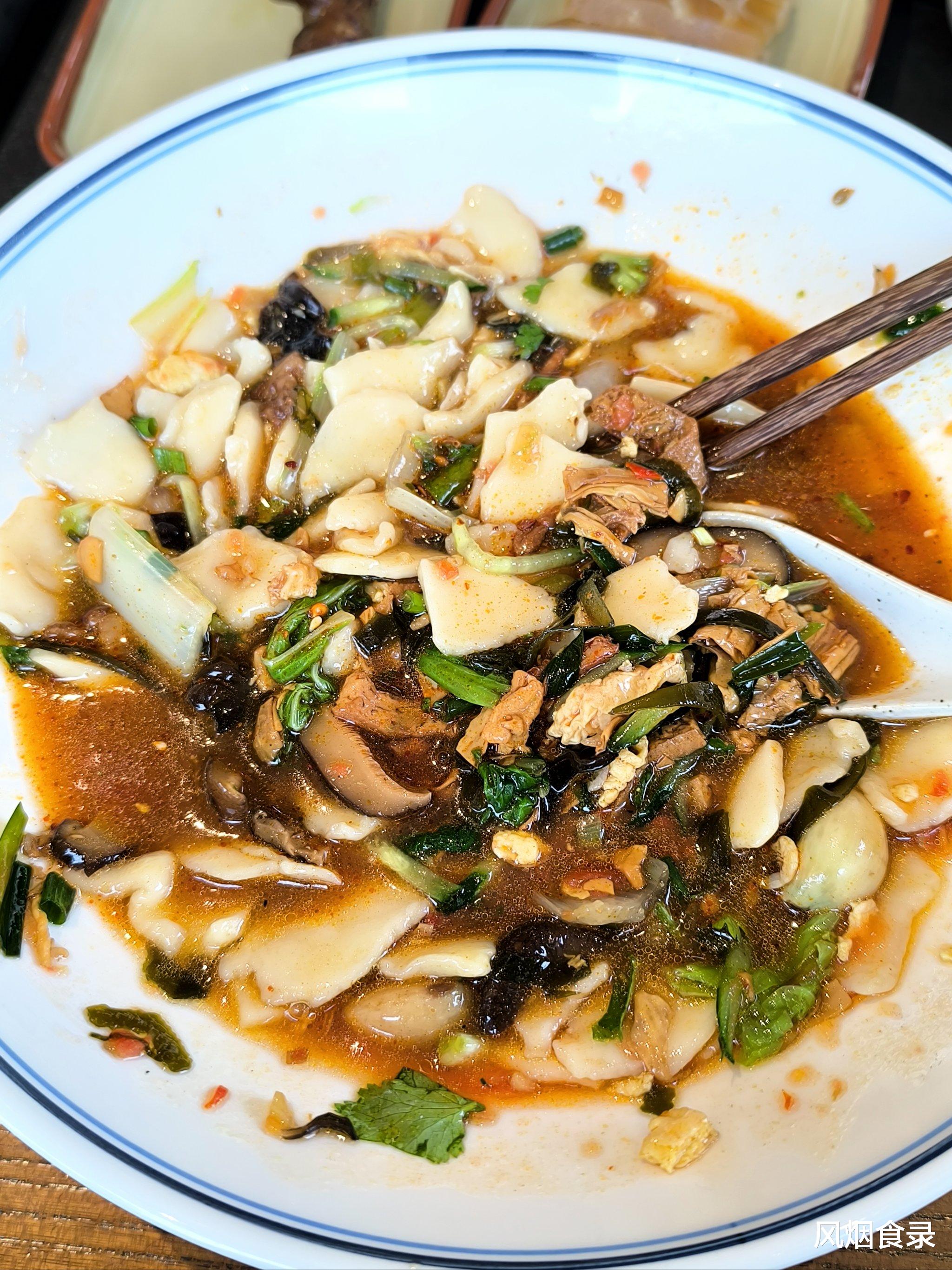 面片儿吸饱了酸香汤汁,嚼起来弹牙又挂汁。