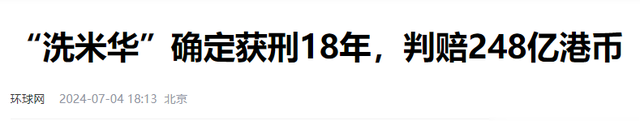参考信源:环球网2024年7月4日——“洗米华”确定获刑18年,判赔248亿港币