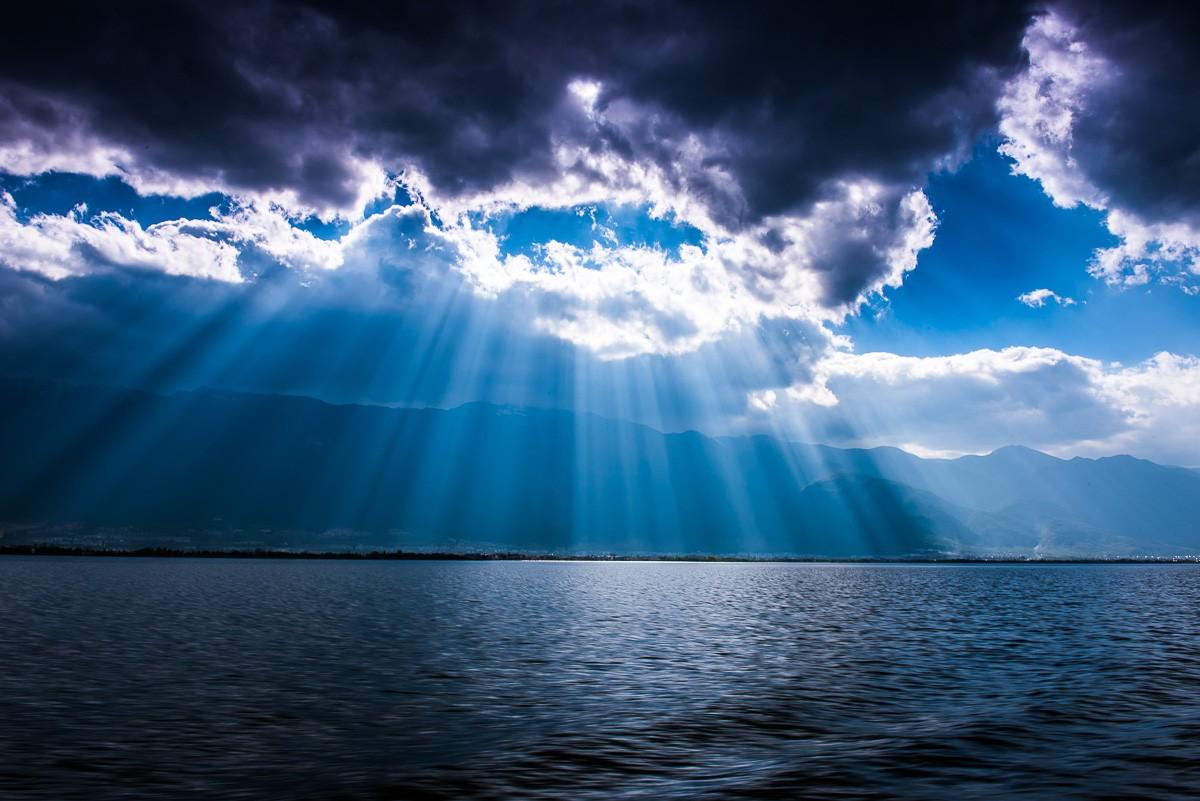 静卧在苍山脚下的洱海,如同一枚宝石般镶嵌在古滇之南四周绵延的山脉中,远处还能看见依稀的山顶雪貌。当你惊讶于云南秘境深处的山水秀美时,偶然出没的不知名“大鸟”浮过“海”平面,再度增添了丁达尔效应下的几分仙气。