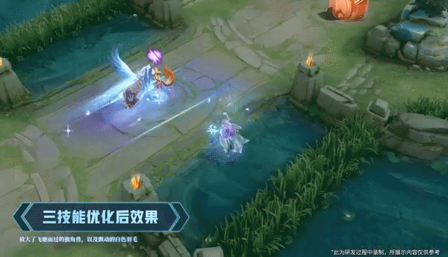 三技能优化:放大了飞驰而过的独角兽,以及飘动的白色羽毛。