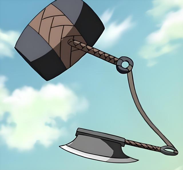 第五名:钝刀·兜割这把武器造型很奇特,绳子一端连着刀,另一端连着锤子,攻击方式是先用刀砍,再用锤子砸在刀背上以追加力量,号称可以击溃一切防御。这个设定不知道靠谱不,咱就说假如,让柱间召唤个五重罗生门出来,不知道这锤子能不能破防呢?估计有些费劲。