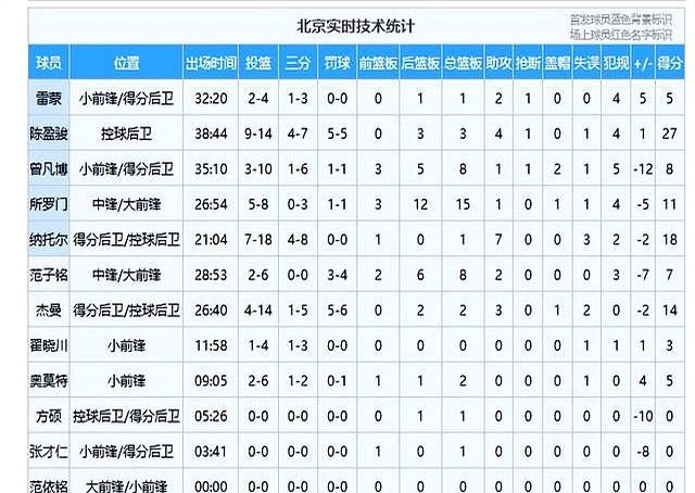 除了陈盈骏一个人砍下27分苦苦支撑,其他球员的表现也都乏善可陈。