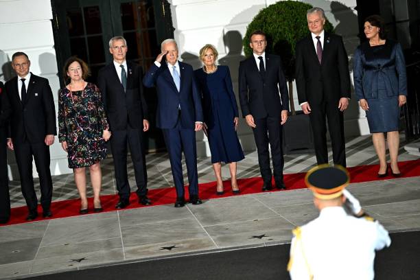 拜登在当地时间7月10日,为前来参加华盛顿北约峰会的宾客们举行了盛大的欢迎仪式和盛大的晚宴。参加峰会的各国首脑和配偶大合影,场面确实有些大。