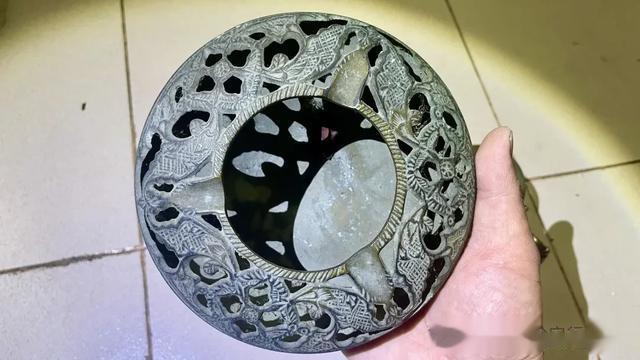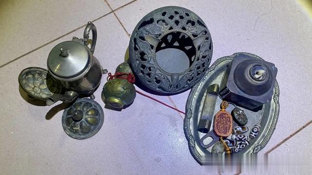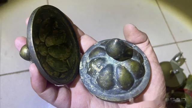 一个老铜香薰炉子一个,有点大,纯铜制作,我拿到时里面还有蜘蛛网呢。