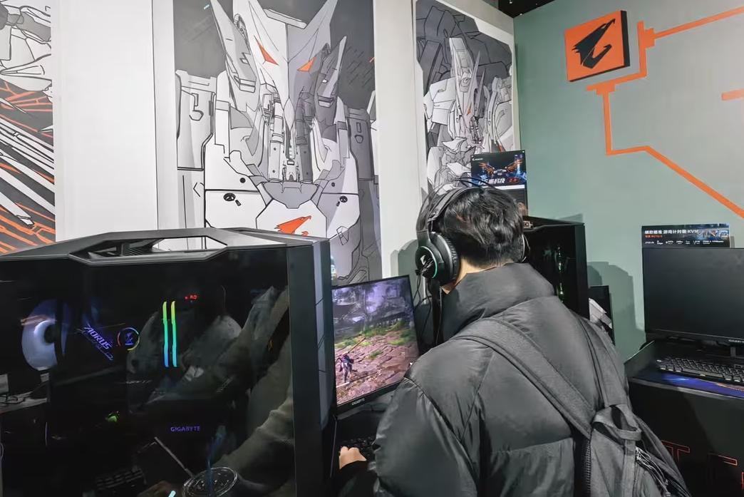 游客及赛场观众前来体验技嘉Z890超级雕整机挑战黑神话悟空