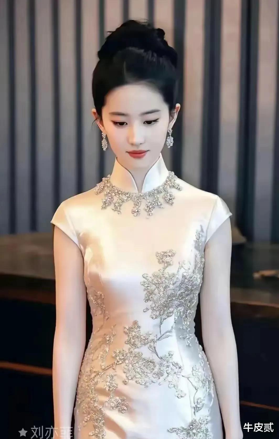 古装好看,现代装也好看,而穿上旗袍,刘亦菲同样也不孬。