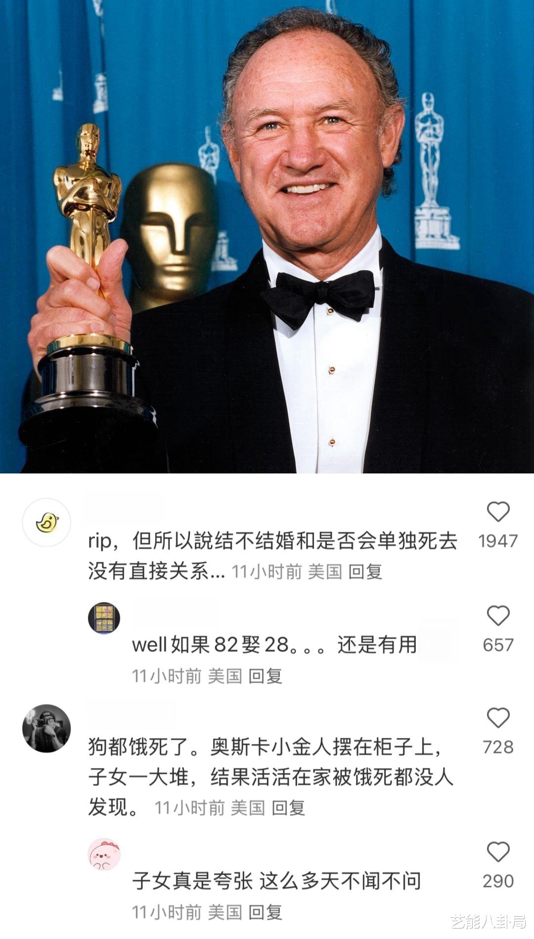 “奥斯卡小金人摆在柜子上,子女一大堆,结果饿死在家都没人发现,太惨了。”